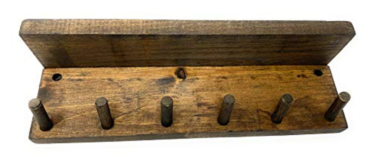 MADE IN USA DISTRESSED WOOD MULTI USE RACK WOOD RACK IS MEANT TO MOUNT ON THE WALL – UTILITY RACK MEANT FOR KEYS COATS HATS AND MORE – 2 PRE DRILLED HOLES FOR HANGING THE MAIN PIECE IS SOLID WOOD AND HARDWOOD DOWELS ARE USED TO HOLD THE VARIOUS ITEMS EXCELLENT ITEM TO DISPLAY IN ANY HOME … GREAT VALUE !!!