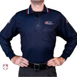 - Long-sleeved umpire shirt with three-button placket and a split tail design