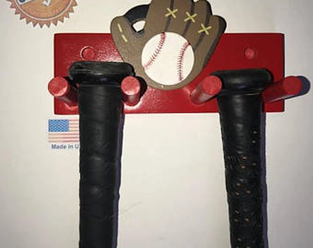 MWCSPORTS Baseball Bat Rack Display Holder Red Wall Mount With Glove Decal 2 Bats Softball