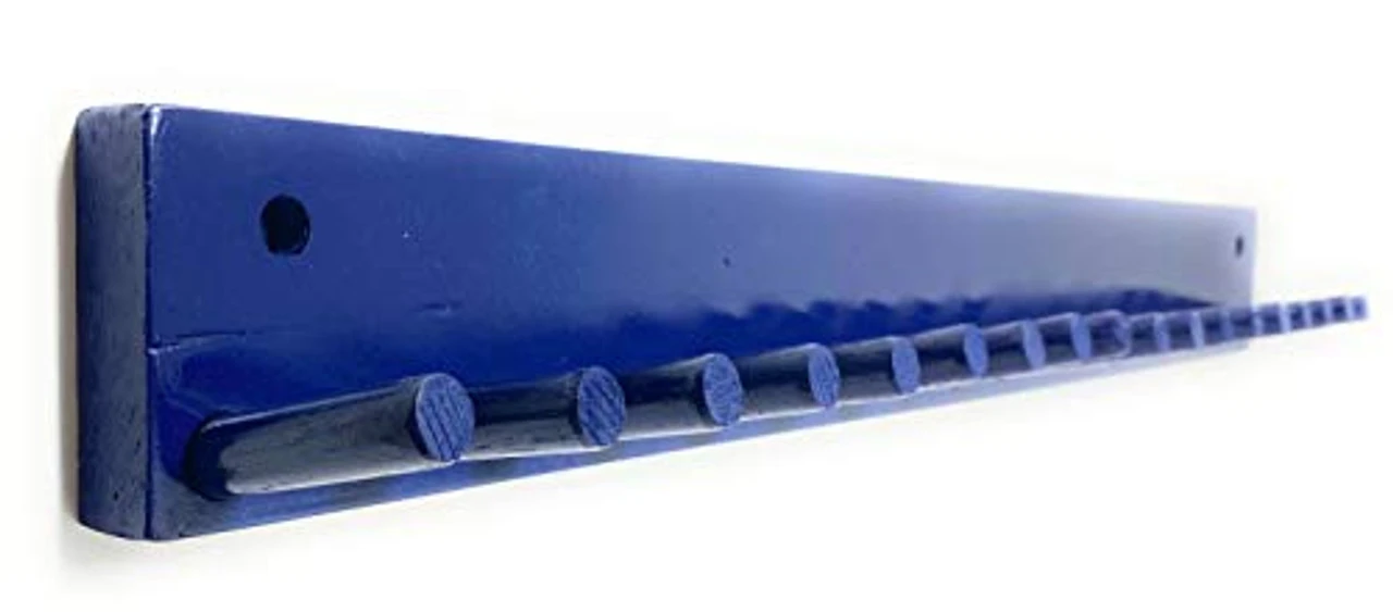 MADE IN USA MINI COLLECTIBLE BAT RACK MEANT TO MOUNT ON THE WALL – BAT RACK HOLDS 17 MINI COLLECTIBLE BATS AWARDS METALS – MEASURES APPROX. 23 INCHES LONG – APPROX 2 1/2 INCHES WIDE – APPROX 1 INCH THICK – 2 PRE DRILLED HOLES FOR HANGING THE MAIN PIECE IS SOLID WOOD AND HARDWOOD DOWELS ARE USED TO HOLD THE BAT THE DOWELS HAVE APPROX. 1 INCH SPACING FOR BATS EXCELLENT ITEM TO DISPLAY IN ANY HOME… GREAT VALUE !!!