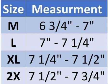 Sizing: On your dominant hand, measure from base of palm to tip of middle finger