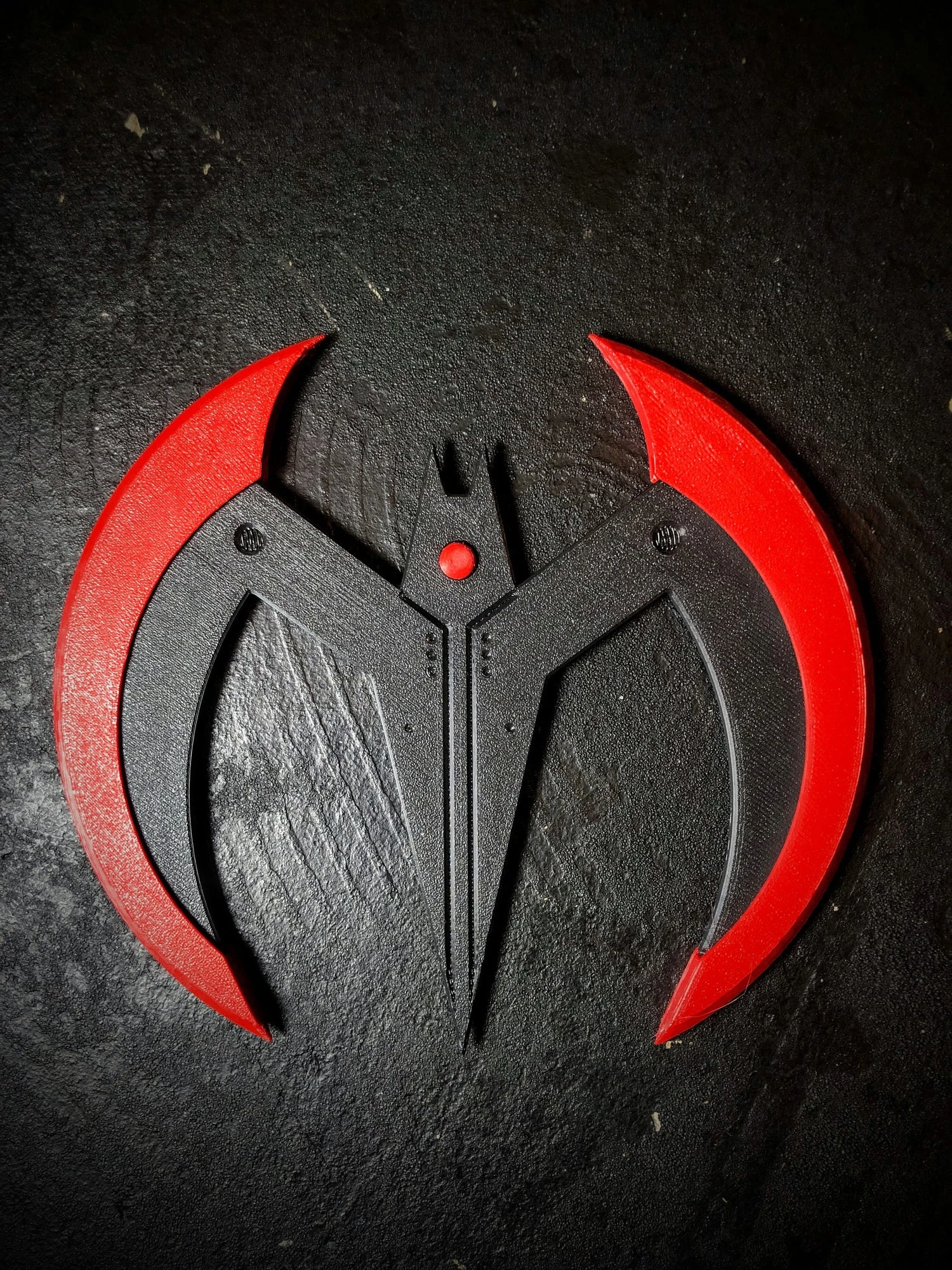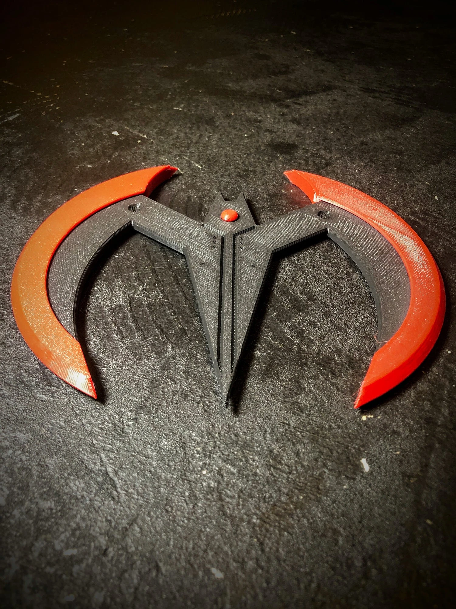 3D printable STL file of Batarang inspired by Batman Beyond! Comes in four pieces you’ll have to print separately and assemble (print 2 buttons, one for each side). It prints super easily, and the wings and buttons can just be glued on!