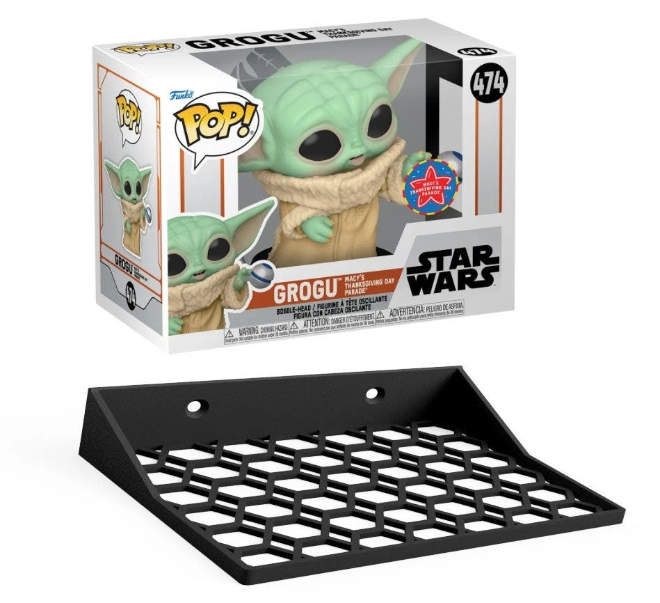 This 3D-printed display shelf is perfect for displaying your Grogu Funko Pop Box which is kind of “sideways” as compared to a normal box. This shelf fits the box only, or will fit if you use a soft thin plastic box protector.