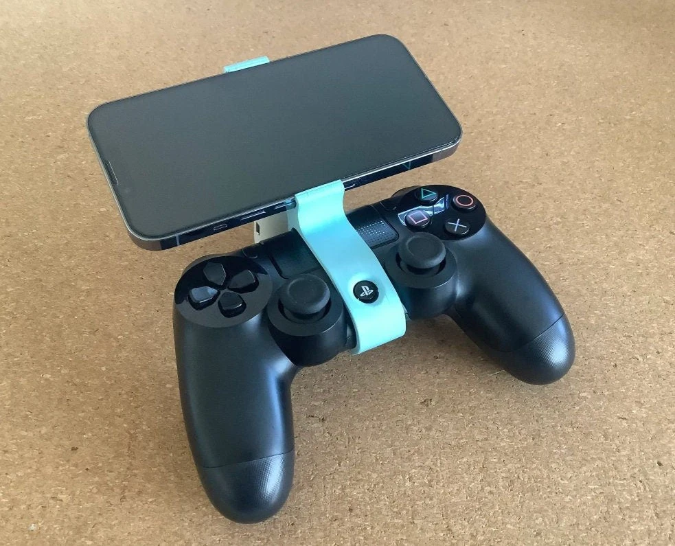 Quick easy attachment to add a PS4 controller to the iPhone 13 Pro. This makes it easy to play games on your iPhone 13 Pro but use the PS4 controller via the bluetooth connection!