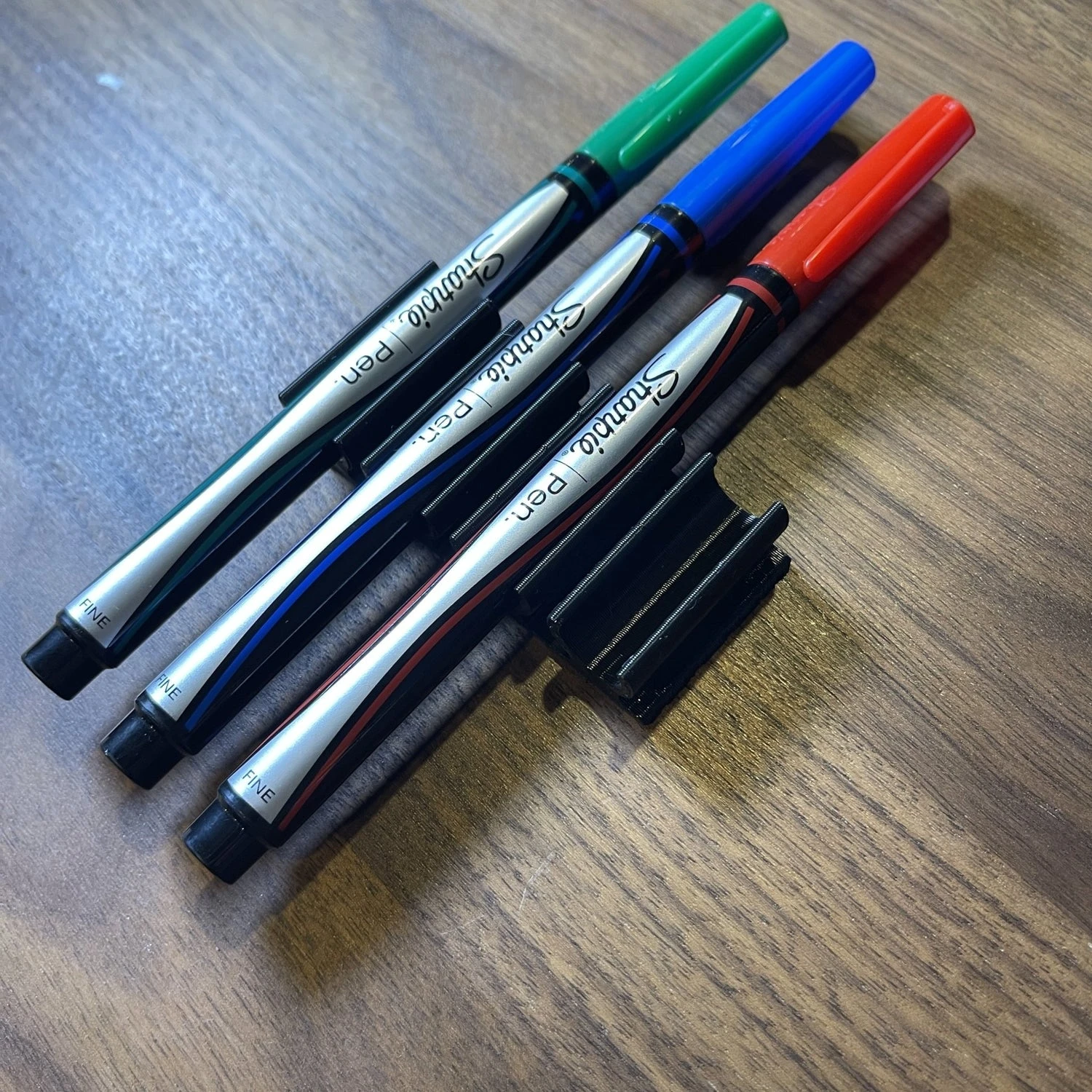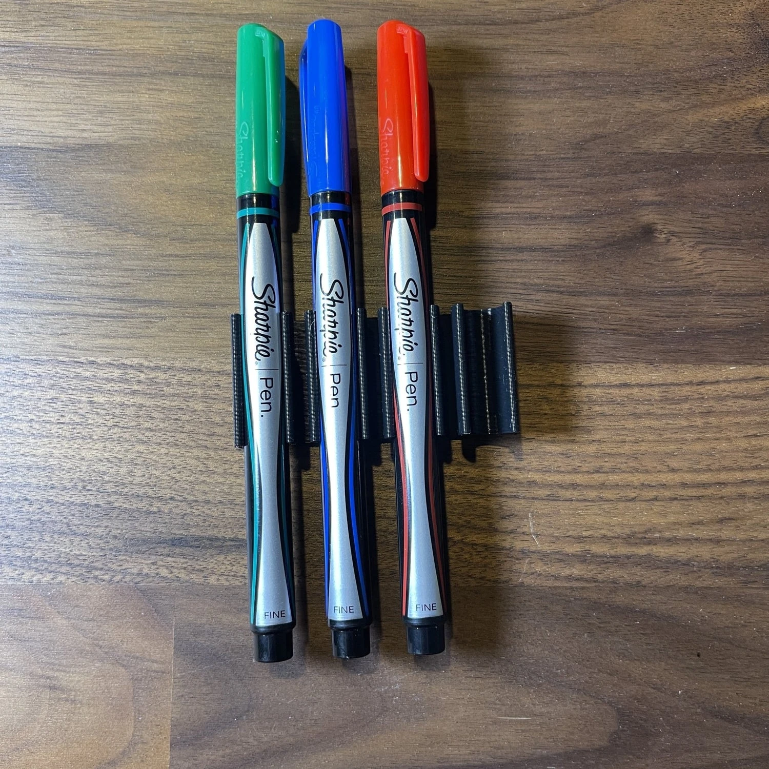 This simple but incredibly useful Marker Holder for Sharpie FINE permanent markers can hold up to four (4) or eight (8) Sharpies. It’s useful for mounting to the side of table top tools, in a craft room or office desk, or other workshop space. I have a few of these mounted throughout the house – one in my basement workshop and another in the garage, and one on my miter saw just in case I need to mark something.