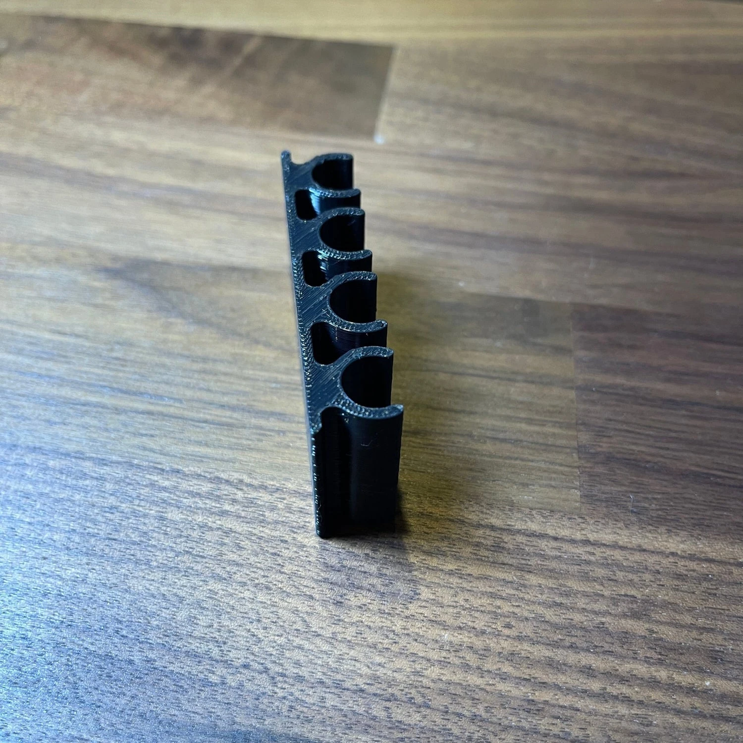 This simple but incredibly useful Marker Holder for Sharpie permanent markers can hold up to four (4) or eight (8) Sharpies. It’s useful for mounting to the side of table top tools, in a craft room or office desk, or other workshop space. I have a few of these mounted throughout the house – one in my basement workshop and another in the garage, and one on my miter saw just in case I need to mark something.