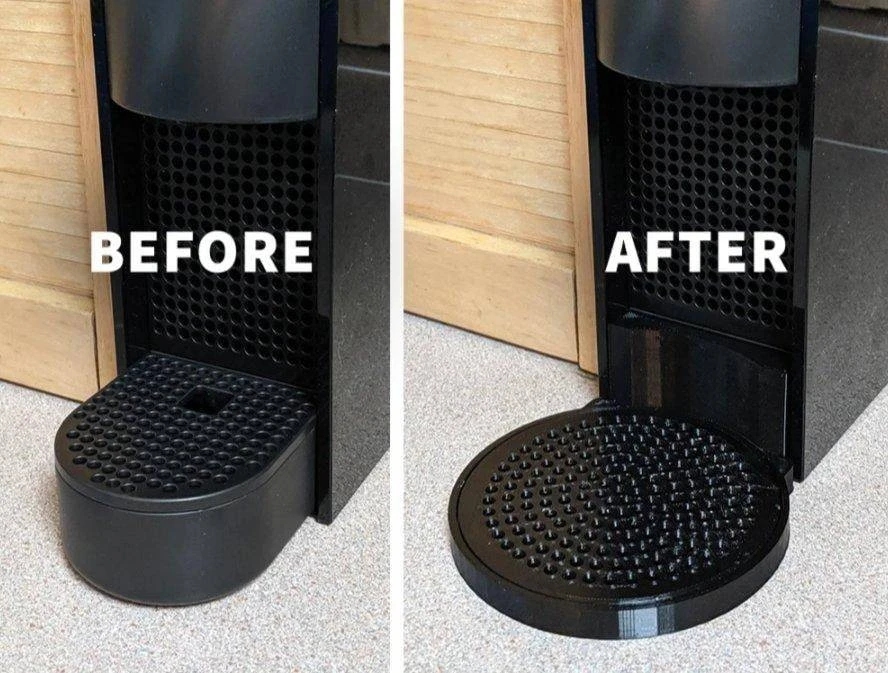 The standard stand that came with the Nespresso Essenza Mini was way too long, so we couldn’t use larger cups! With this 3D-printed enhancement, we can now use whichever mug we like with our coffee maker.