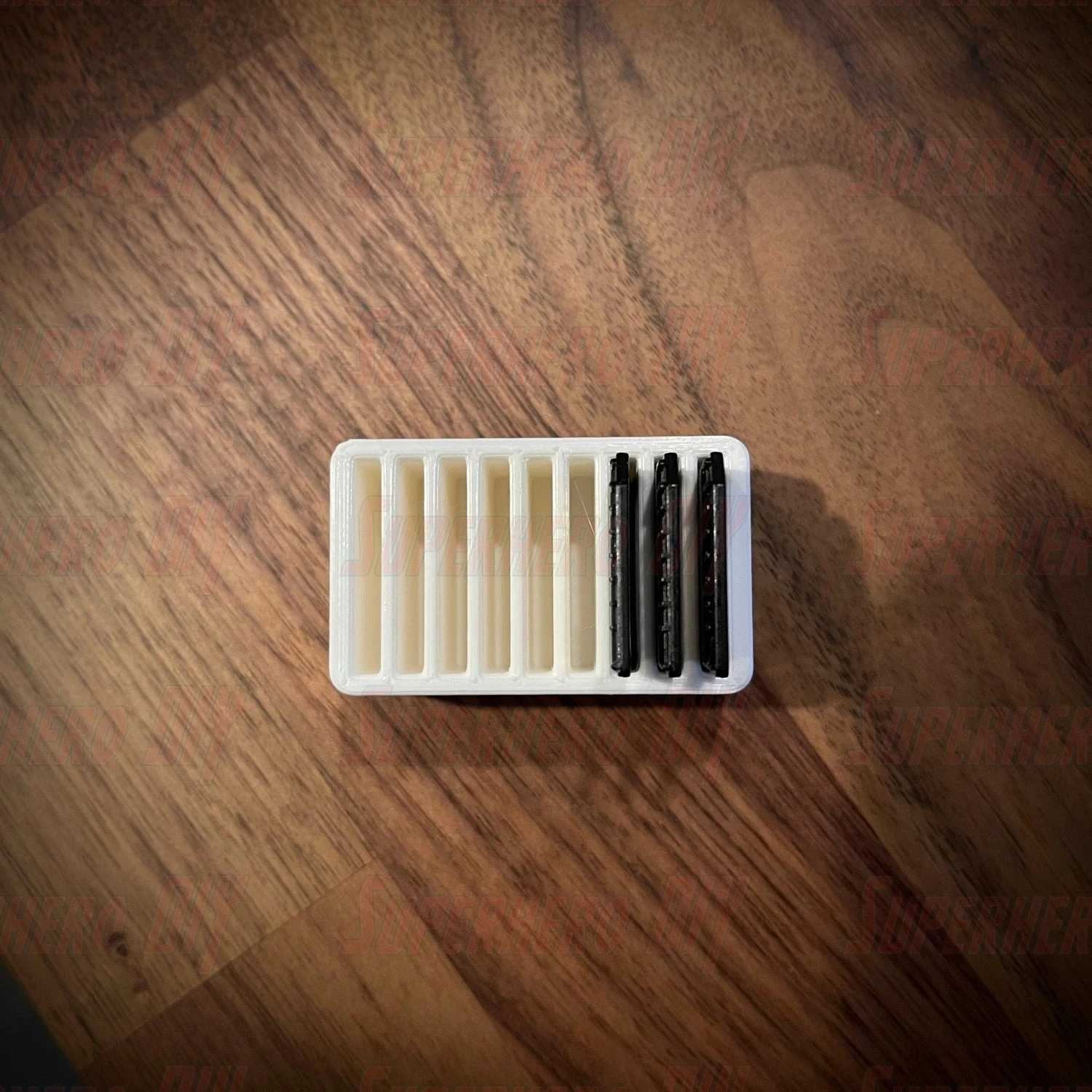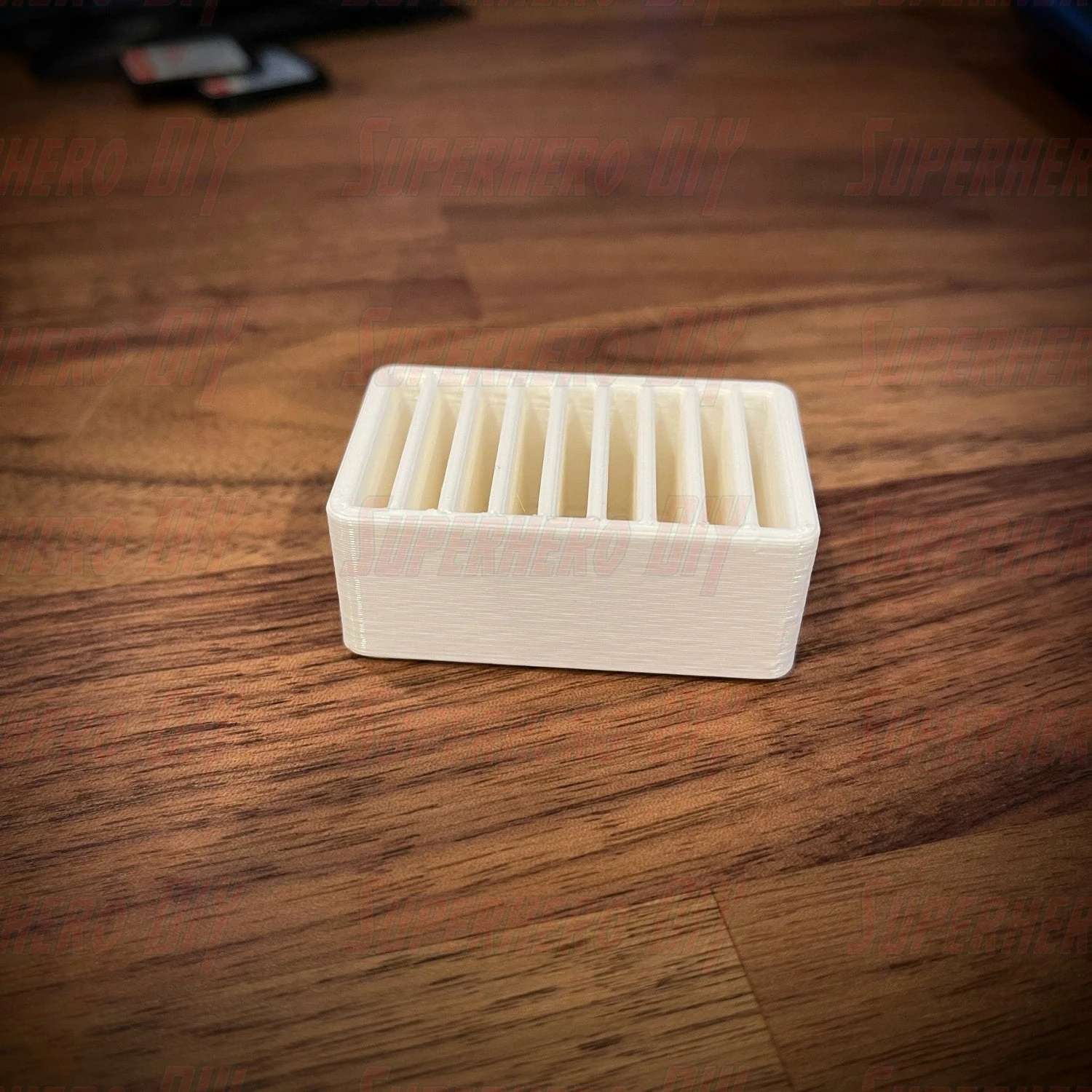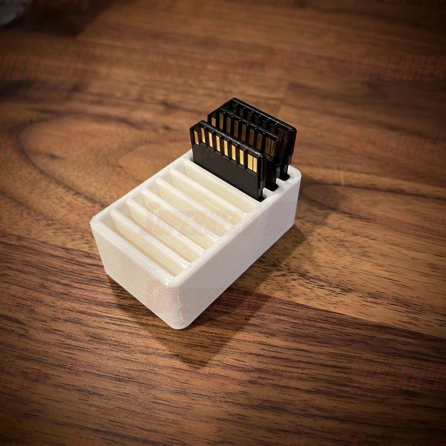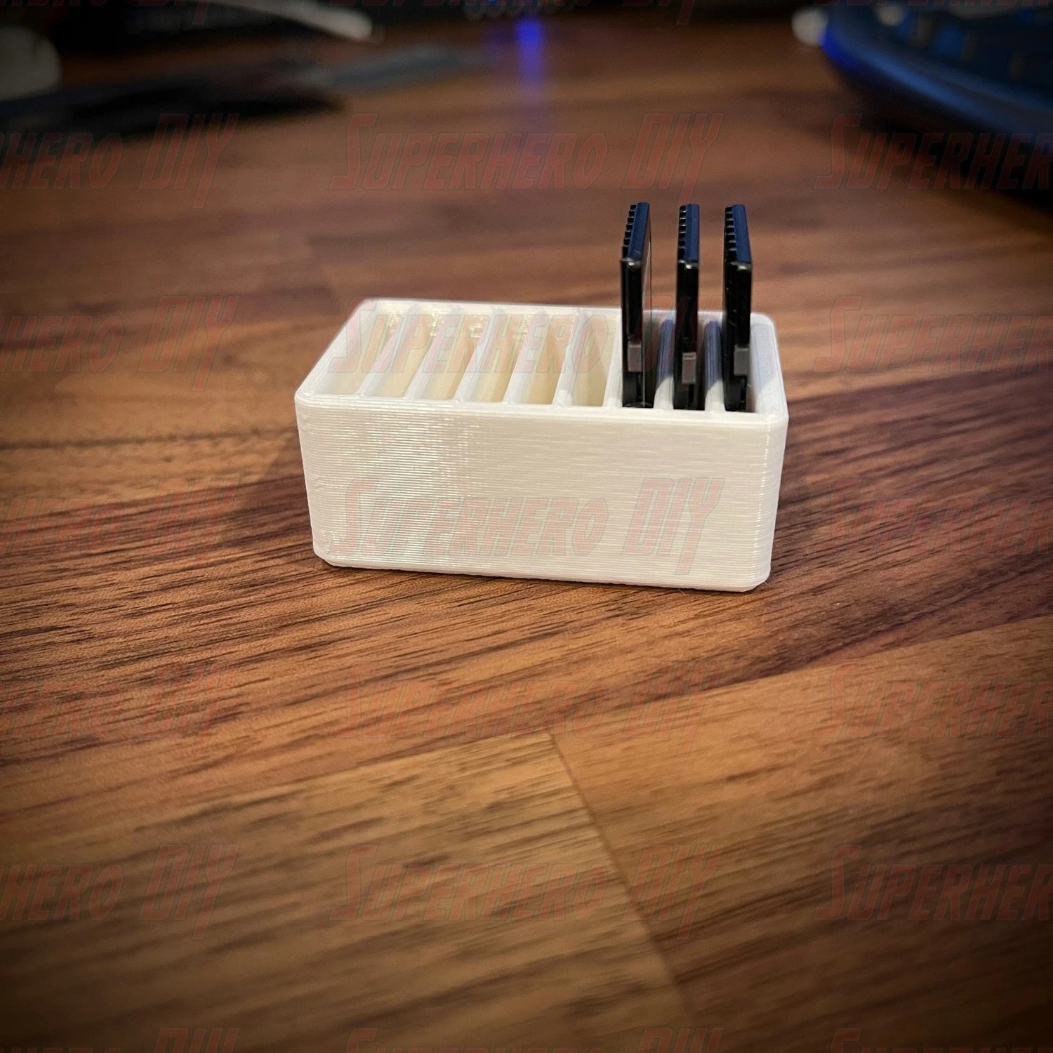 I have a bunch of 3D printers which all use this kind of SD card (does not fit microSD cards), so I needed an easy way to organize them! This is super simple and can just sit on my desk, keeping my SD cards from being all over the place, falling off the desk, etc. Plus I can set this up so the ones on the right are “ready to go” and the ones on the left need something done or are the “old files”.