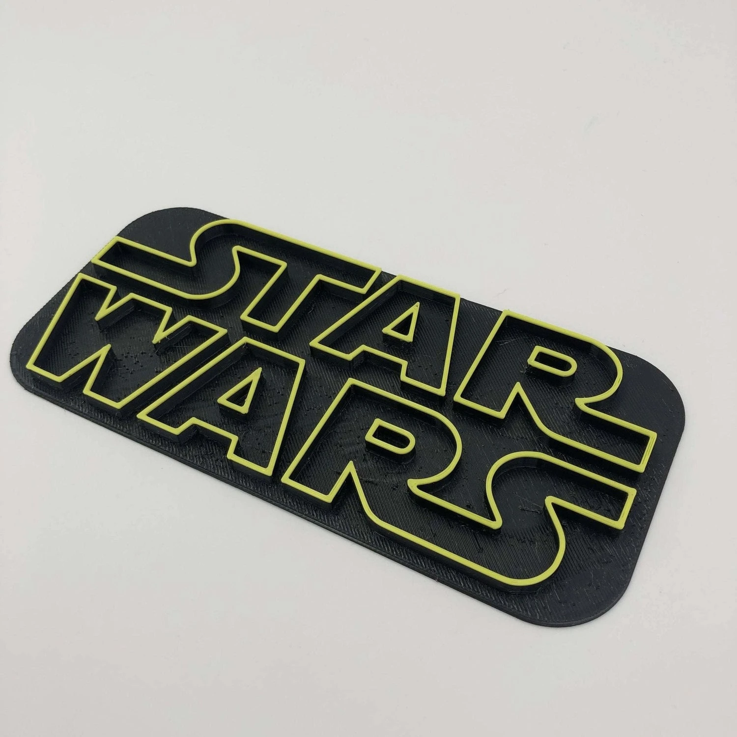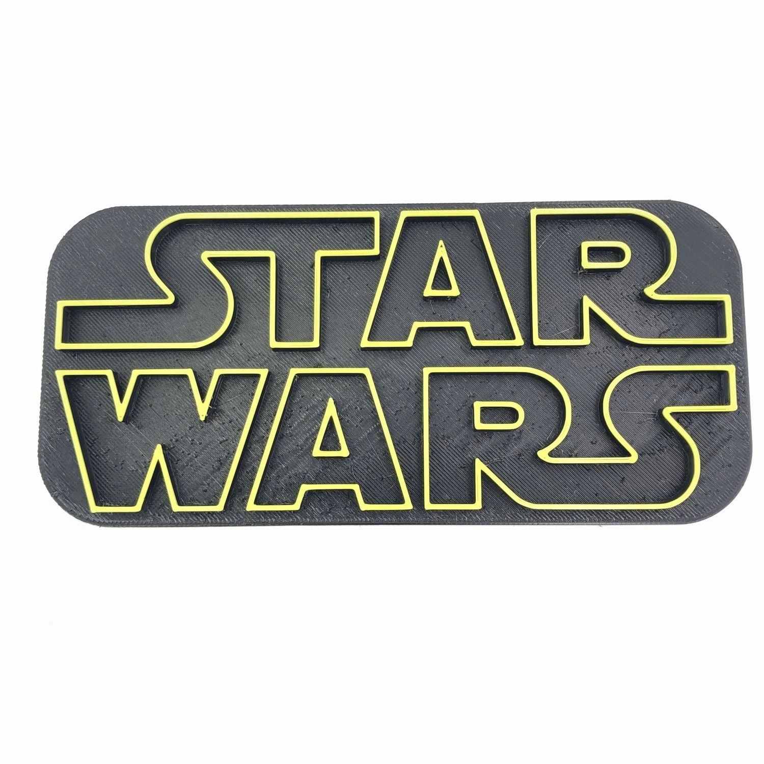 This 3D printed logo can be mounted on your wall or sat on a shelf or table. 3D-printed in durable, glossy PETG plastic.
