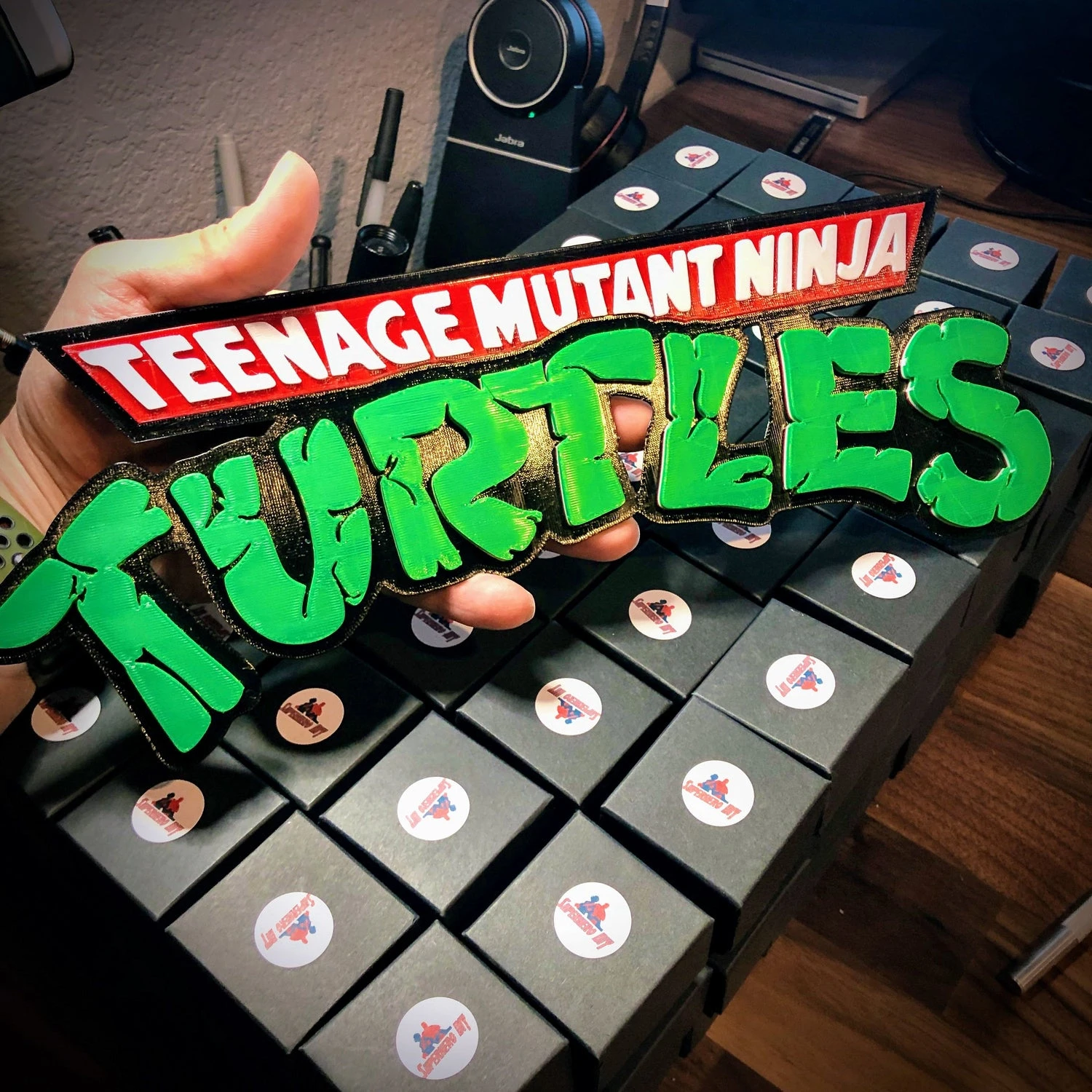 This 3D printed logo can be mounted on your wall or sat on a shelf or table. 3D-printed in durable, glossy PETG plastic.