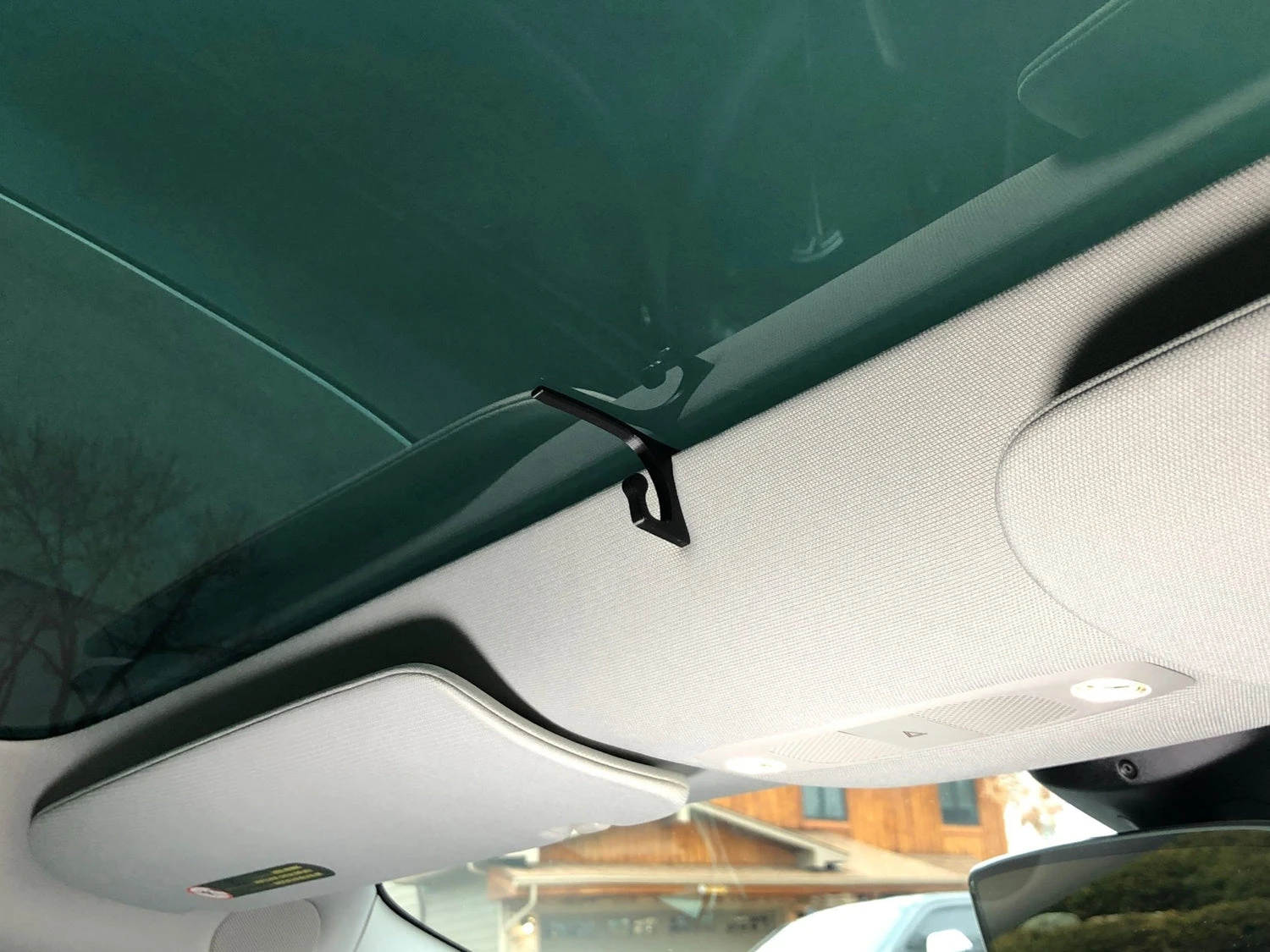 This Tesla Model 3 Sunglasses Mount for Headliner slides right in between the glass and the headliner in the ceiling of the Tesla Model 3 or Model Y, securing itself right where it makes the most sense to have your sunglasses! No stickers, drilling, or other unsightly changes needed. The perfectly-designed hook holds on to a light pair of shades, and makes it easy to hang your sunglasses or grab them when the sun is right in your eyes.