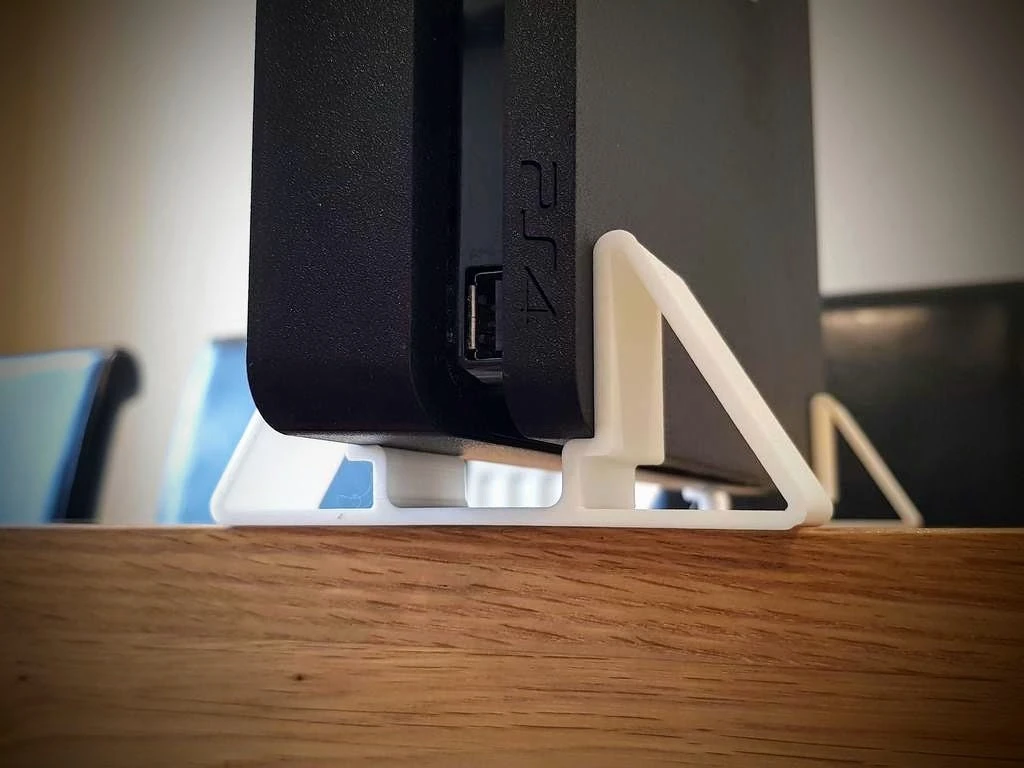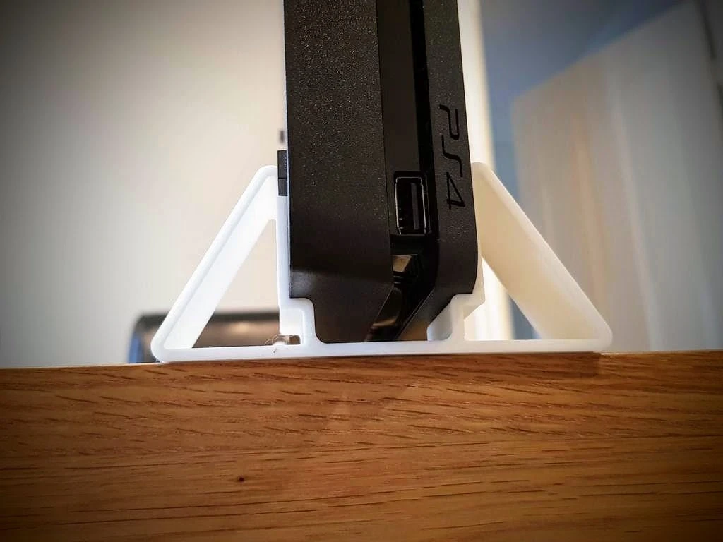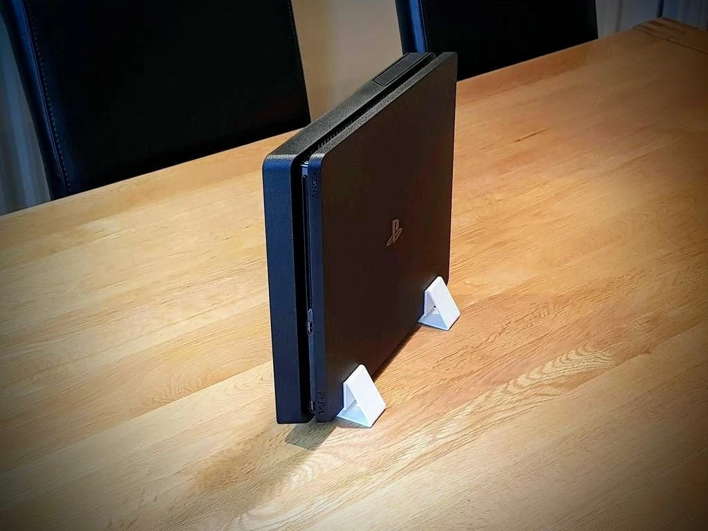 This is a very simple yet highly effective design to securely store your PS4 slim console vertically to save space and increase airflow around the console. This vertical foot stand for the Playstation 4 Slim console is really easy to mount — just slide your console onto the stands and voila! Your PS4 is sitting vertically and isn’t going anywhere with this great design.