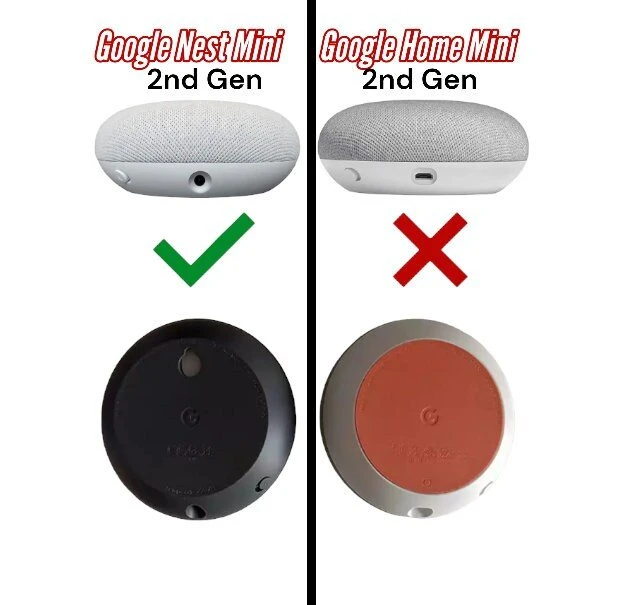 ONLY WORKS WITH Google Home Mini 2nd Gen. The Home Mini 1st Gen plug is too small to stay fit on this printed mount. The NEST Mini (Model H2C, round connector) has a screw hole mount on back and does not work, vs HOME Mini (Model H0A, MicroUSB connector) which has no holes and does work.