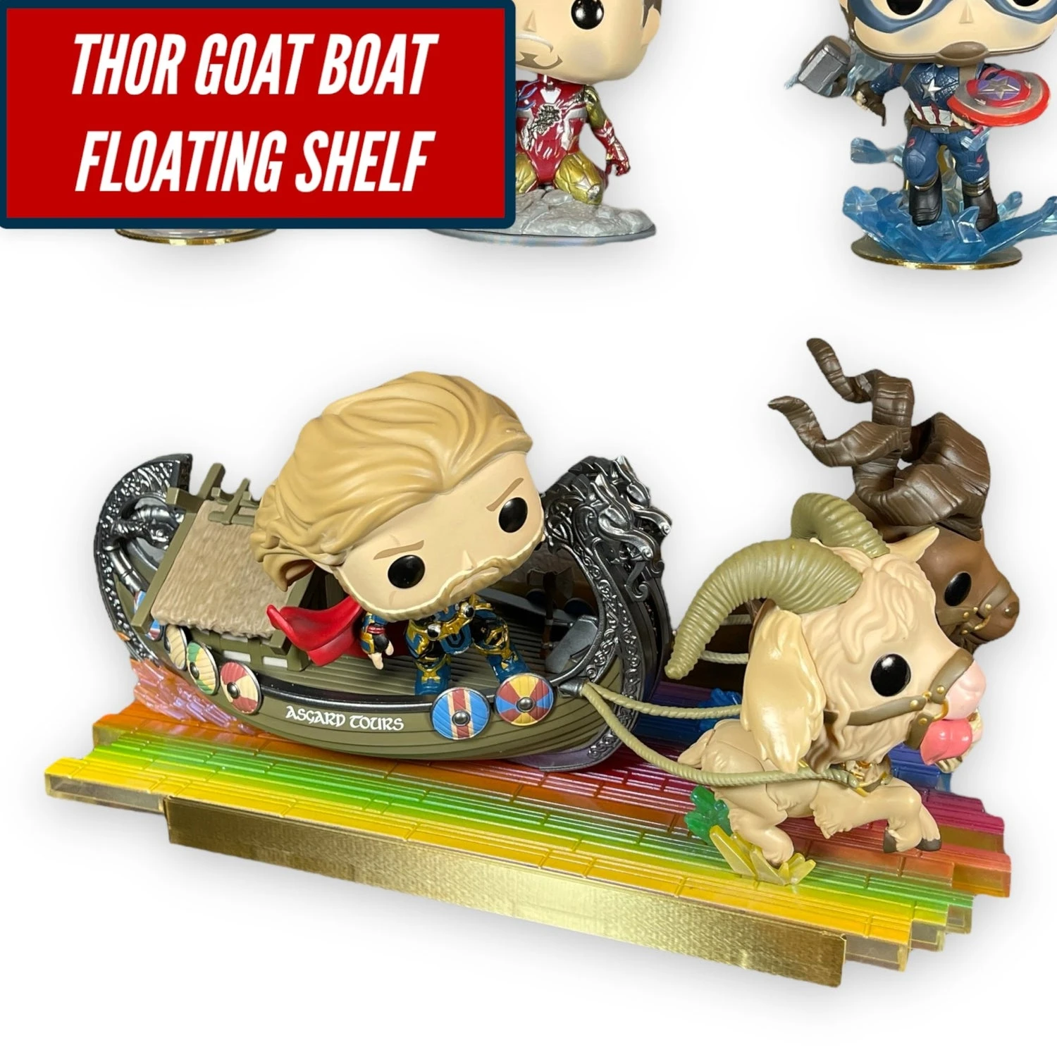 This 3D-printed display shelf is specifically made for displaying your Funko Pop Rides Goat Boat from the movie Thor: Love and Thunder.