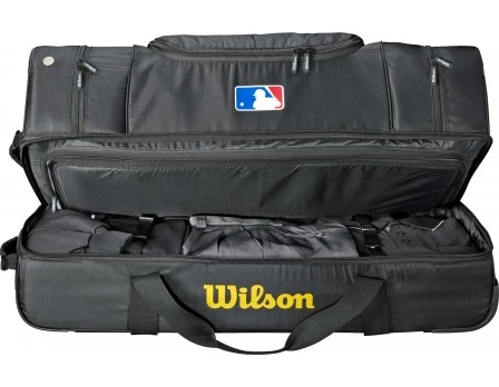 The Wilson MLB 36″ Umpire Equipment Bag on Wheels is the choice of umpires at every level! Known for its durability, size and versatility, this bag goes the extra innings with you.